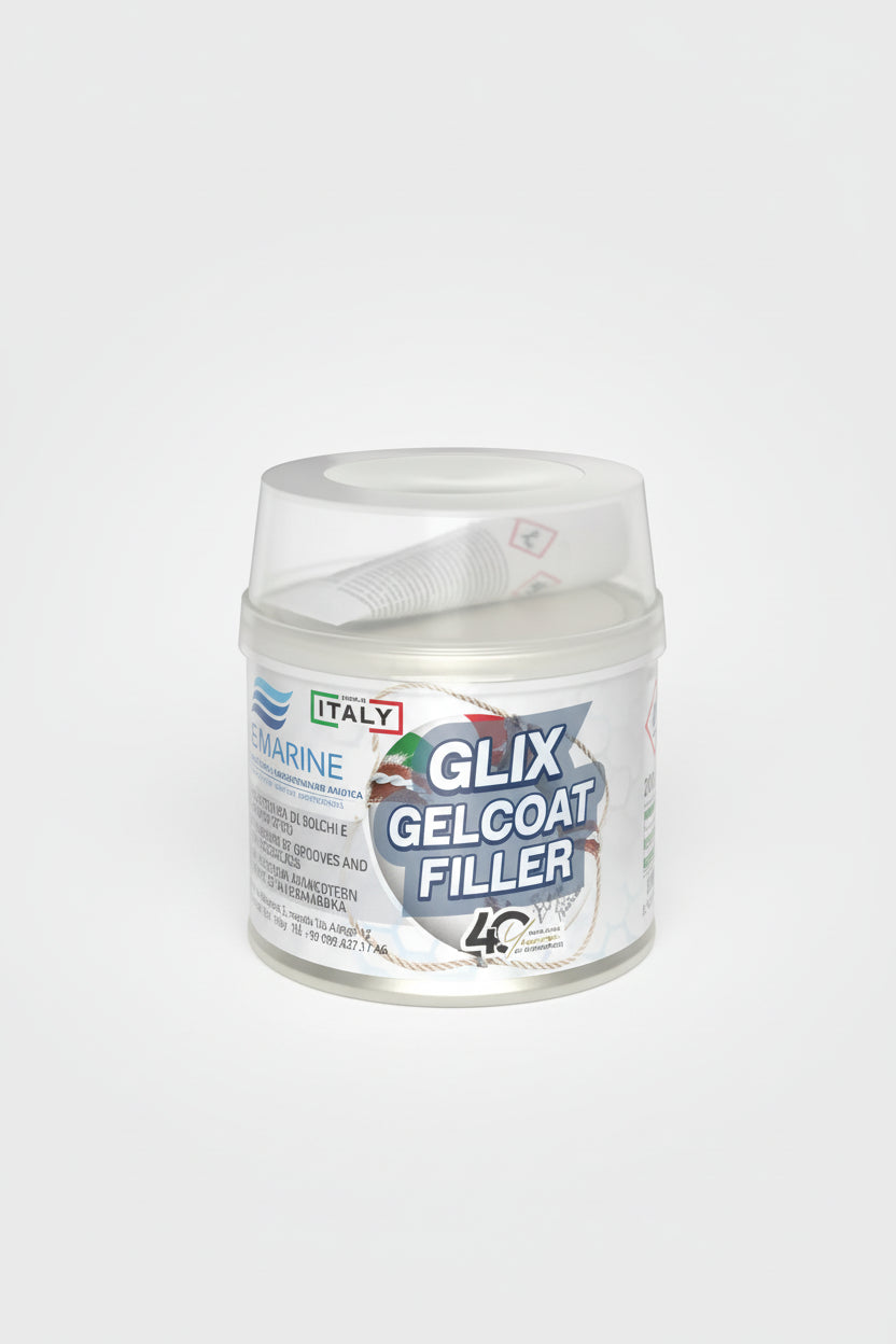 Μπορεί να συνδυαστεί με το "REXIM FIBREGLASS" (κωδικός 04714) για μεγαλύτερες επισκευές. Αφού τρίψετε το REXIM FIBERGLASS, προσθέστε σκληρυντικό στο "GLYX GELCOAT FILLER" και ανακατέψτε καλά. Pροχωρήστε με μια απαλή λείανση (ομαλός σοβάς) της επιφάνειας για να εξισορροπήσετε τυχόν ανωμαλίες. Μετά από περίπου 10-20 λεπτά, καθαρίστε την επιφάνεια αρχικά με γυαλόχαρτο βαθμού 120, ακολουθούμενο από γυαλόχαρτο νερού 260/280. Τέλος, τελειοποιήστε με γυαλόχαρτο νερού 400/500. Τώρα μπορείτε να γυαλίσετε την επιφάνεια για να έχετε μια τέλεια και αόρατη επισκευή.