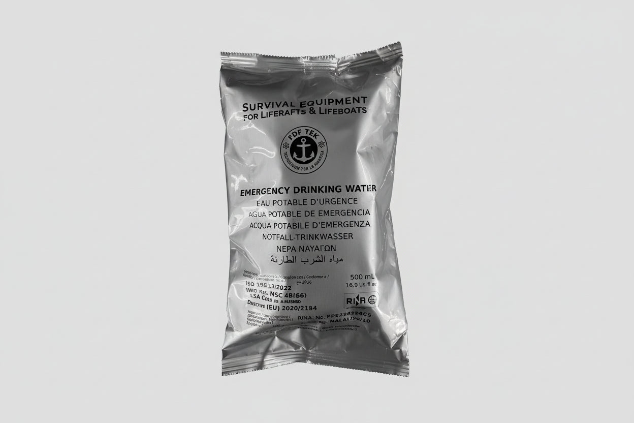 Νερό έκτακτης ανάγκης για τον εξοπλισμό επιβίωσης των liferafts, των σωστικών σκαφών, των σκαφών αναψυχής και εμπορικών σκαφών