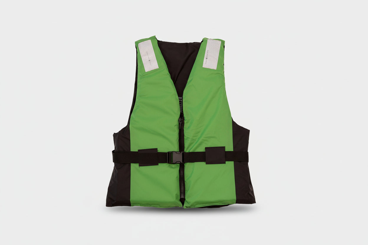 φερμουάρ για σταθερή εφαρμογή και εύκολη τοποθέτηση, και αντανακλαστικές ταινίες SOLAS. Διαθέσιμο σε 2 μεγέθη, σε χρωματικό συνδυασμό μαύρο-πράσινο και στάμπα στο πίσω μέρος.