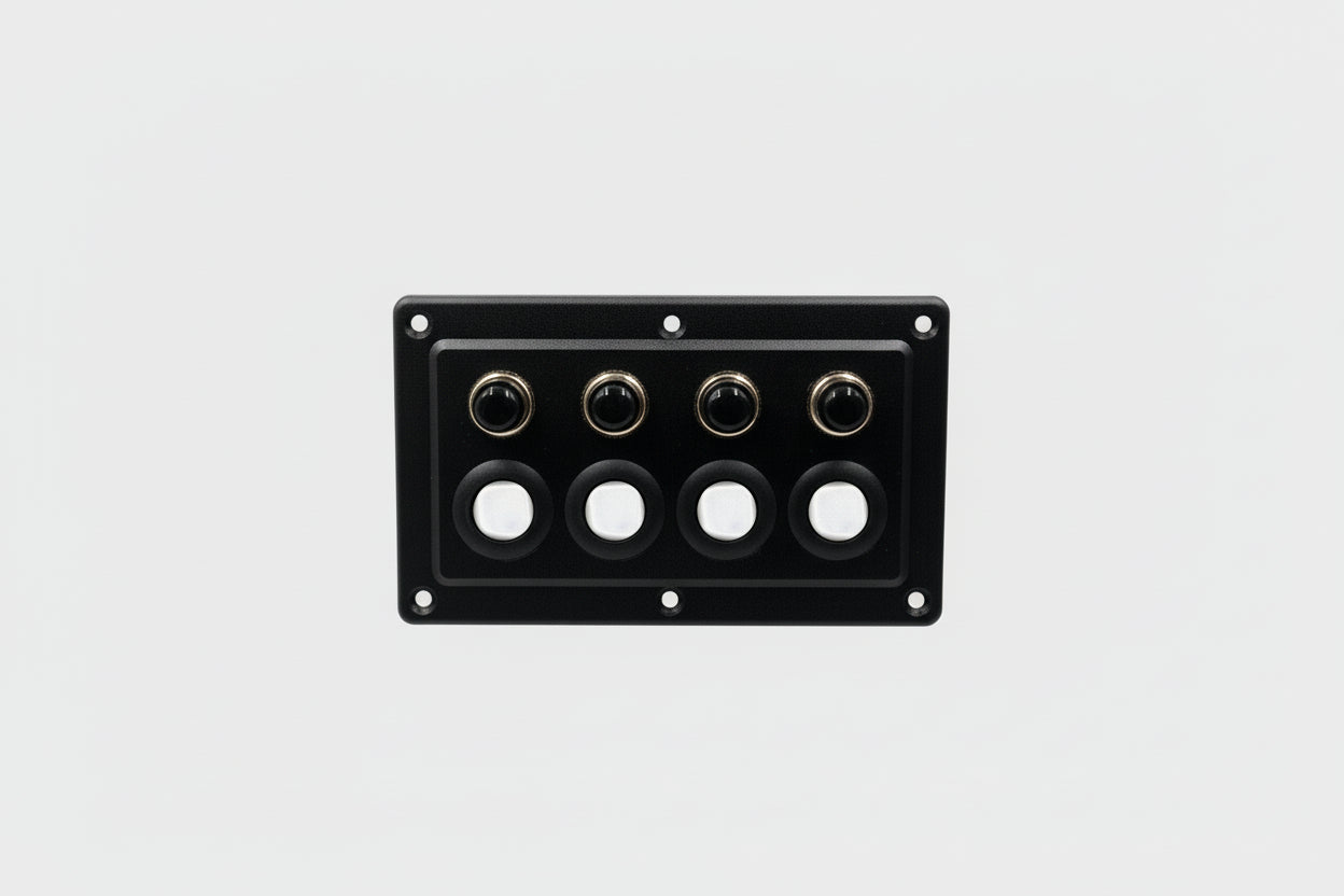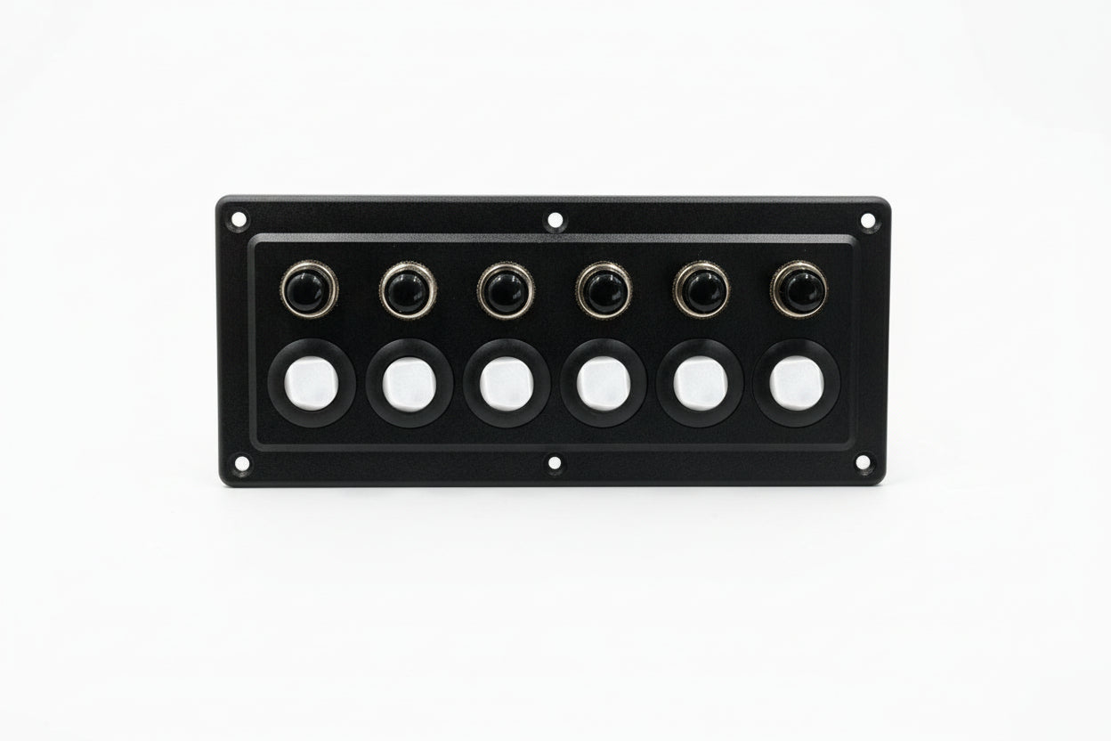IP65. Πίνακας με διακόπτες αφής και αυτόματες θερμικές ασφάλειες. Κατασκευασμένος από ABS πλαστικό. Με ενσωματωμένο σύστημα προστασίας υπερφόρτωσης. Προστασία αντίστροφης πολικότητας, προστασία από υπέρταση και προστασία από υπερβολικό ρεύμα, παρέχοντας ασφάλεια σε όλα τα συνδεδεμένα φώτα και αξεσουάρ. Ο κάθε διακόπτης είναι φωτιζόμενος λευκός και μόλις ενεργοποιηθεί γίνεται μπλε. Η συσκευασία περιλαμβάνει 45 προτυπωμένα αυτοκόλλητα ενδείξεων και 6 βίδες εγκατάστασης. CE.