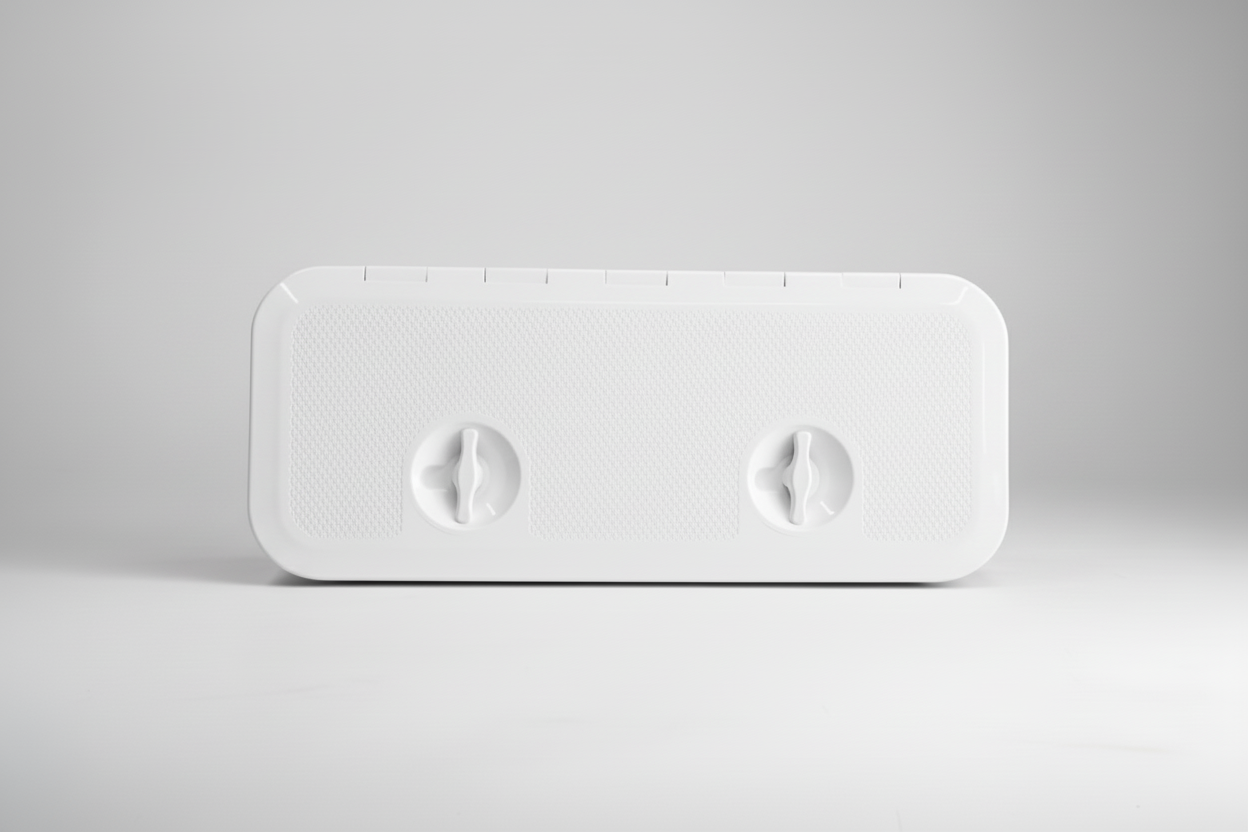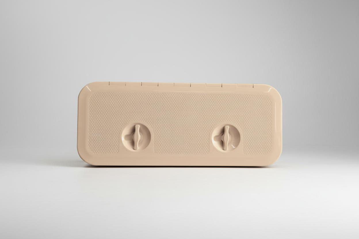 Τα πορτάκια EVAL, ορθογώνια ή τετράγωνα, είναι κατασκευασμένα από ανθεκτικό A.B.S. πλαστικό, με UV για μεγάλη αντοχή στην ηλιακή ακτινοβολία, σχεδιασμένα με αντιολισθητική επιφάνεια ,όλα αυτά, τα καθιστούν κατάλληλα και για εξωτερική χρήση. Επίσης τοποθετούνται ,σε κάθετη ή οριζόντια θέση, ώστε να επιτυγχάνεται η πρόσβαση σε διάφορους αποθηκευτικούς χώρους πάνω στο σκάφος. Τα πορτάκια EVAL είναι με άνοιγμα 180M και με καλυμμένες τις υποδοχές για τις βίδες. Ανάλογα με το μοντέλο, έχουν μία ή δύο λαβές και υποδοχή για κλειδαριά (κωδ. 3367), ενώ περιλαμβάνουν και φλάντζα για απόλυτη στεγανότητα. Διατίθενται σε λευκό, γκρι, μπεζ και μαύρο χρώμα.