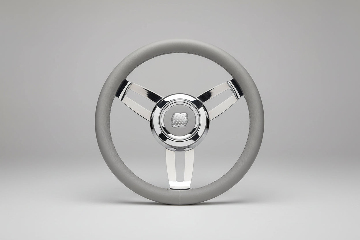 Τιμόνι Ultraflex, κατασκευασμένο από γκρι δέρμα.